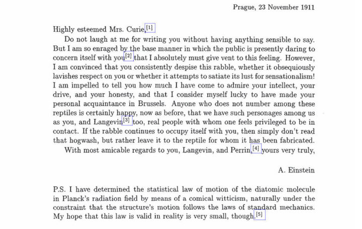 Ich fand es sehr bezaubernd, dass Albert Einstein – mit dem sie auch sehr gerne Radeltouren unternahm – ihr in dieser schwierigen Zeit brieflich zur Seite stand. Es war ein wie wir heute sagen würden ein freundschaftliches „Ignore the Haters“