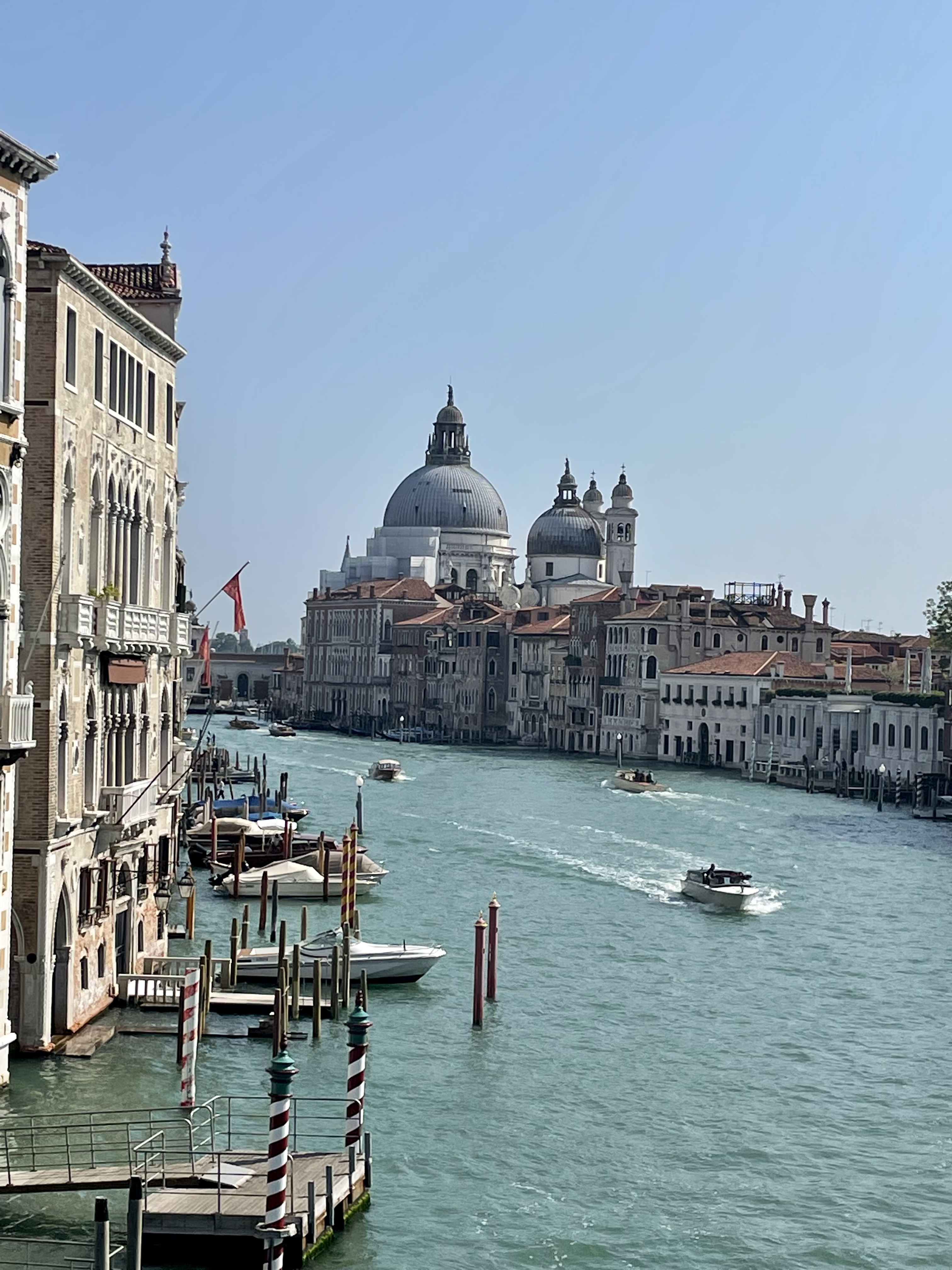 Auf dem Canal Grande wimmelt es bereits von Wasserfahrzeugen: Vaparettos, Wassertaxis, Motorboote, Kähne und die allgegenwärtigen schwarzen Gondeln. In Venedig sind Boote das wichtigste Verkehrsmittel. Autos gibt es nicht. Eine gute Möglichkeit, die Stadt und die vorgelagerten Inseln zu erkunden, sind die Vaparetto, die Wasserbusse, ein 3 Tagesticket hat sich für uns auf jedem Fall gelohnt.