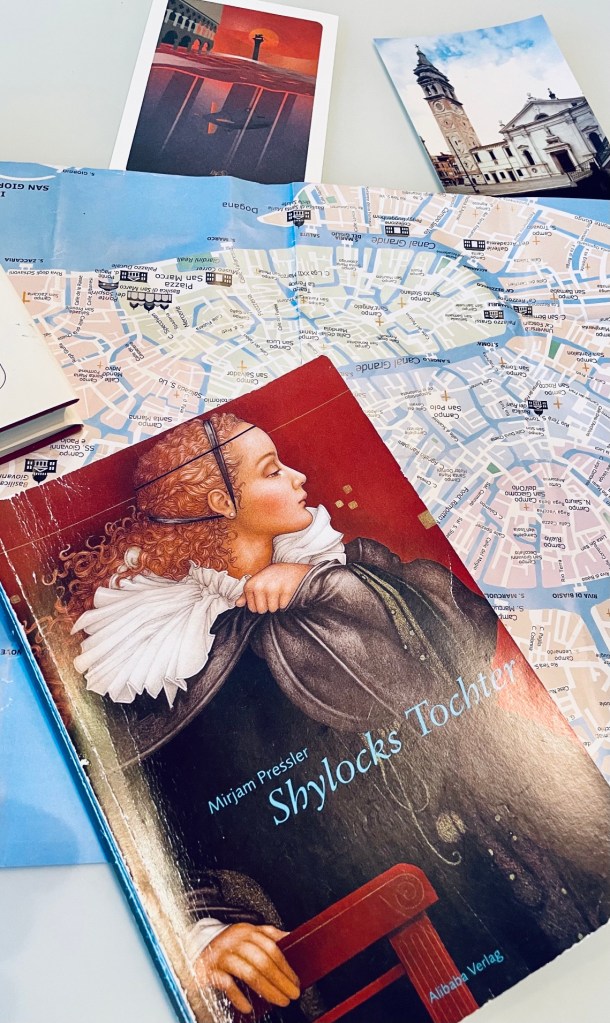 Passend dazu war auch meine letze Venedig-Lektüre, eine Nacherzählung von Shakespeares „The Merchant of Venice“ von Mirjam Pressler „Shylocks Tochter“.