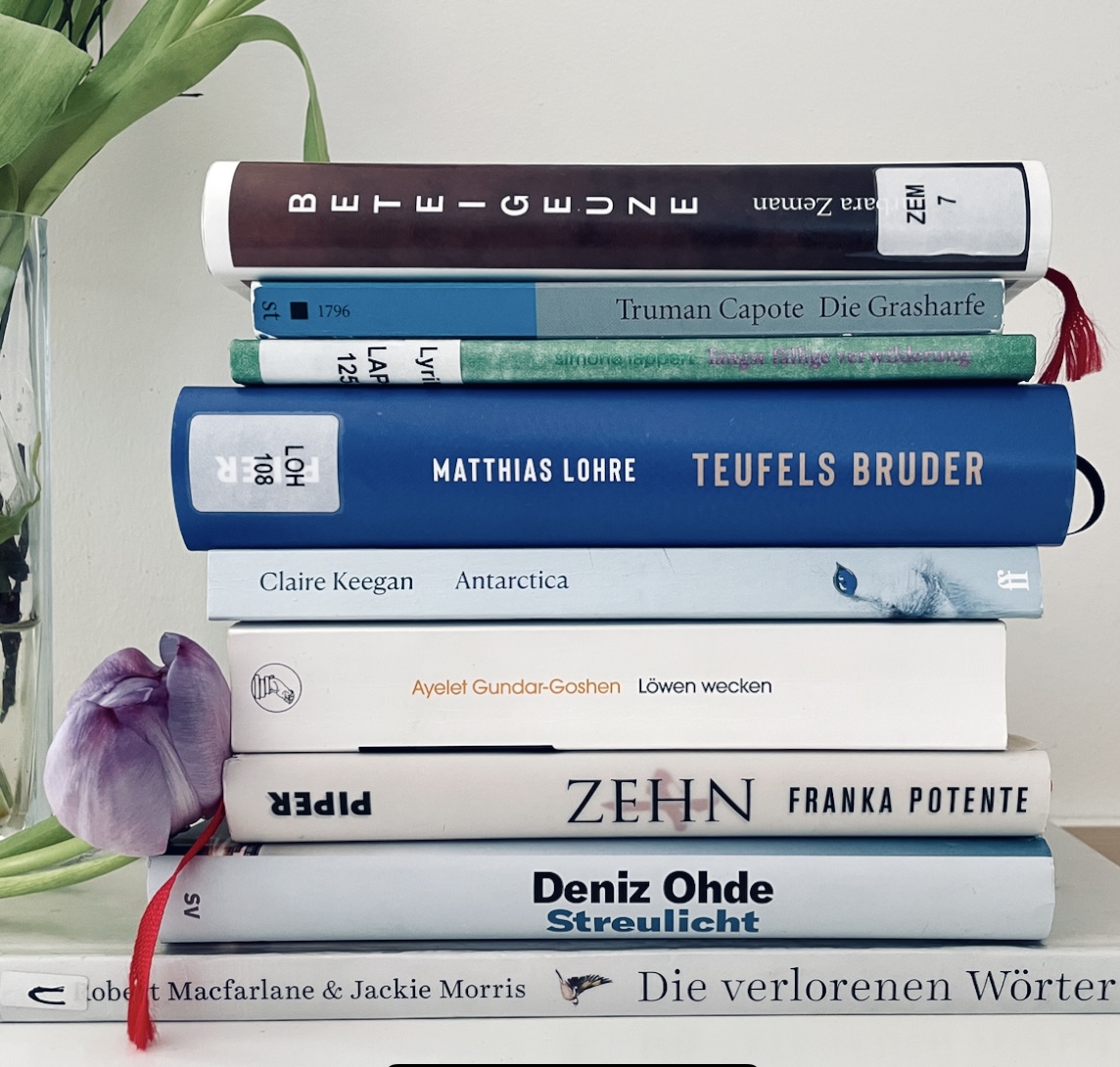 Diesen Monat war ich überall: in Italien mit den Mann-Brüdern, in Israel mitten in einer moralischen Zwickmühle, in einem japanischen Teehaus mit Franka Potente – und sogar auf Großwildjagd im Kongo – ein Hörbuch, das mich völlig überrascht hat. Truman Capote nahm mich mit in ein sonniges Baumhaus. Mit Deniz Ohde sah ich den Industrieschnee fallen, und die poetischen Worte und Bilder von Robert Macfarlane und Jackie Morris ließen mich staunen.