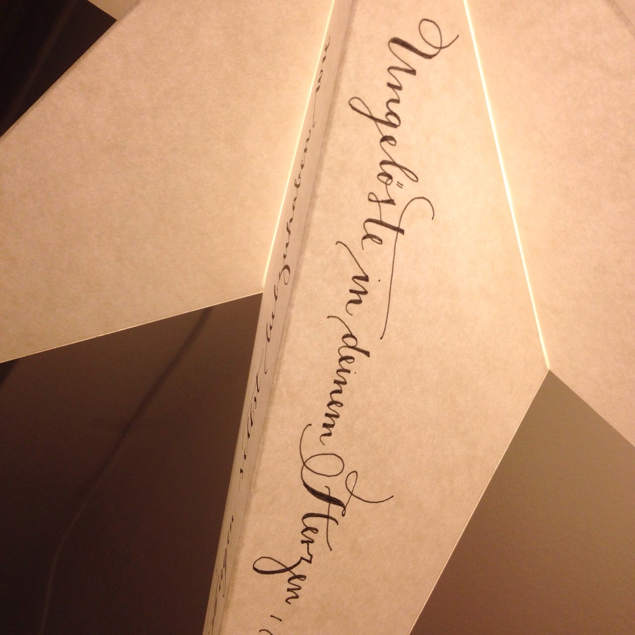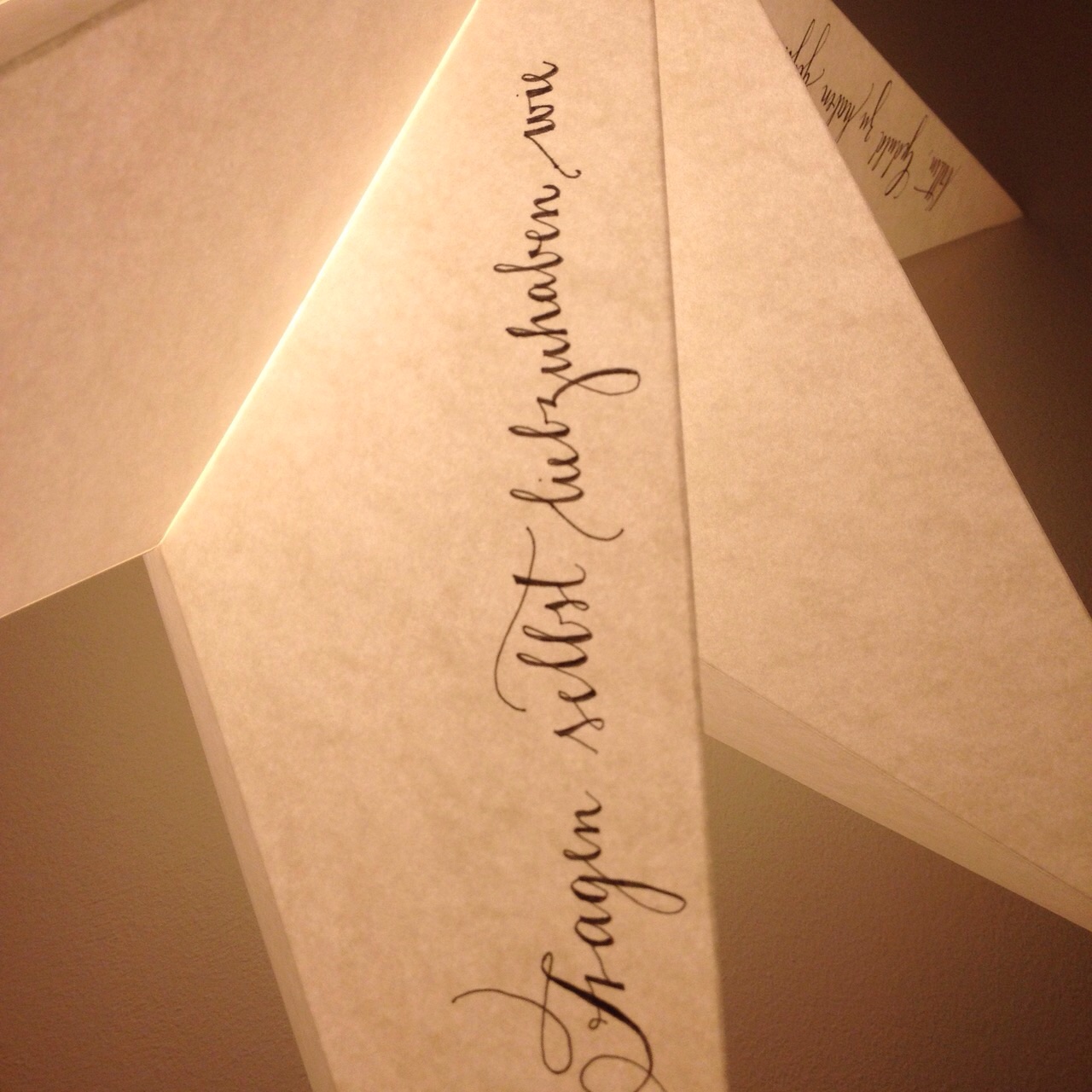 Bingereader war ausgesprochen artig dieses Jahr und hat sich und der Leseecke deshalb selbst zu Weihnachten diesen prachtvollen, wunderbaren, einzigartig schönen und wundervoll kalligrafierten Stern geschenkt. Da kamen vor kurzem einfach zwei Sachen zusammen. Bei Birgit von Sätze & Schätze eines der schönsten und passendsten Gedichte überhaupt entdeckt, sich umgehend einen Rilke-Gedichtband zugelegt und dann bei Queen Sandra of Kalligrafie „Art of Confusion“ diese tollen Sterne entdeckt.